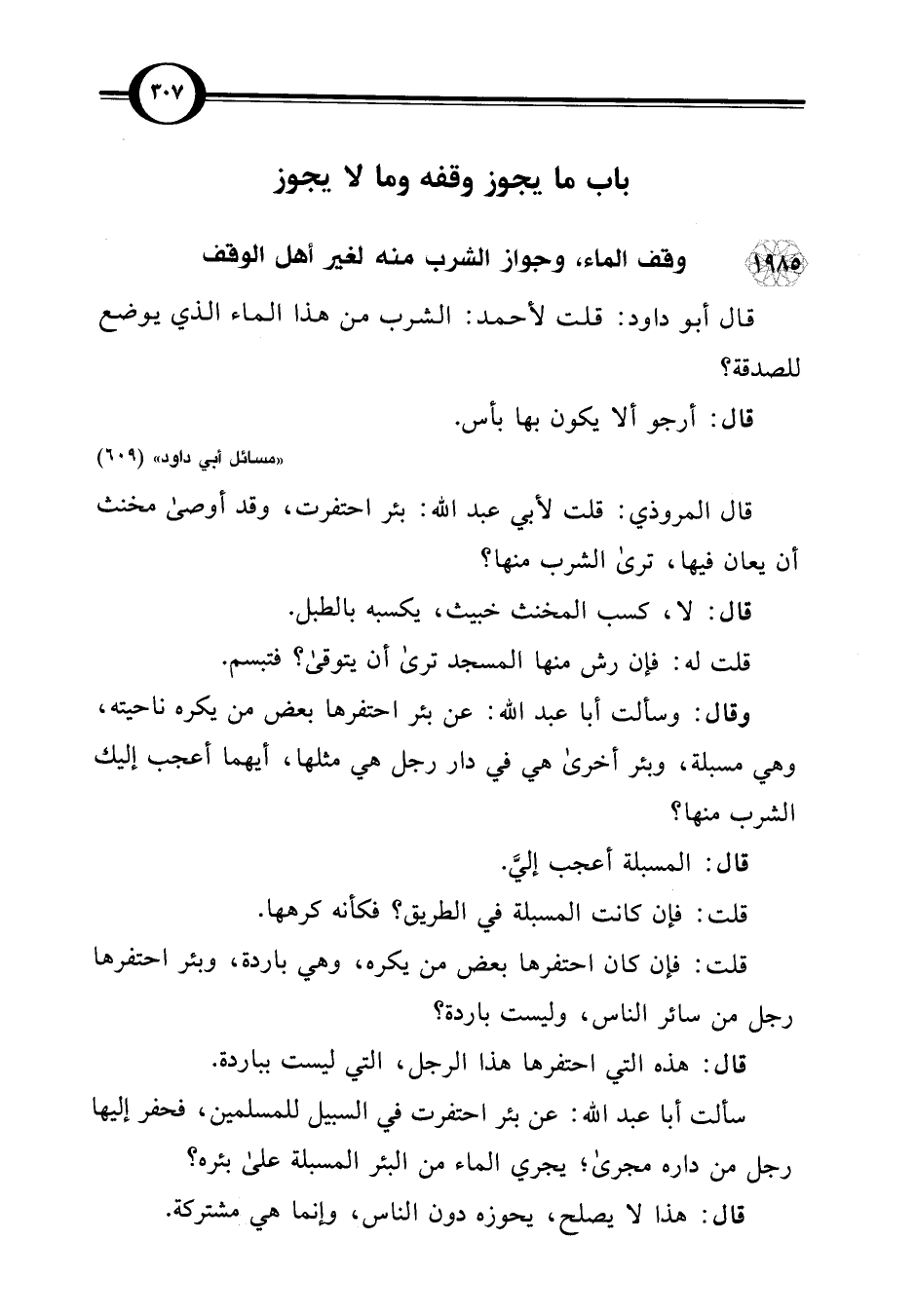 1985 - وقف الماء، وجواز الشرب منه لغير أهل الوقف