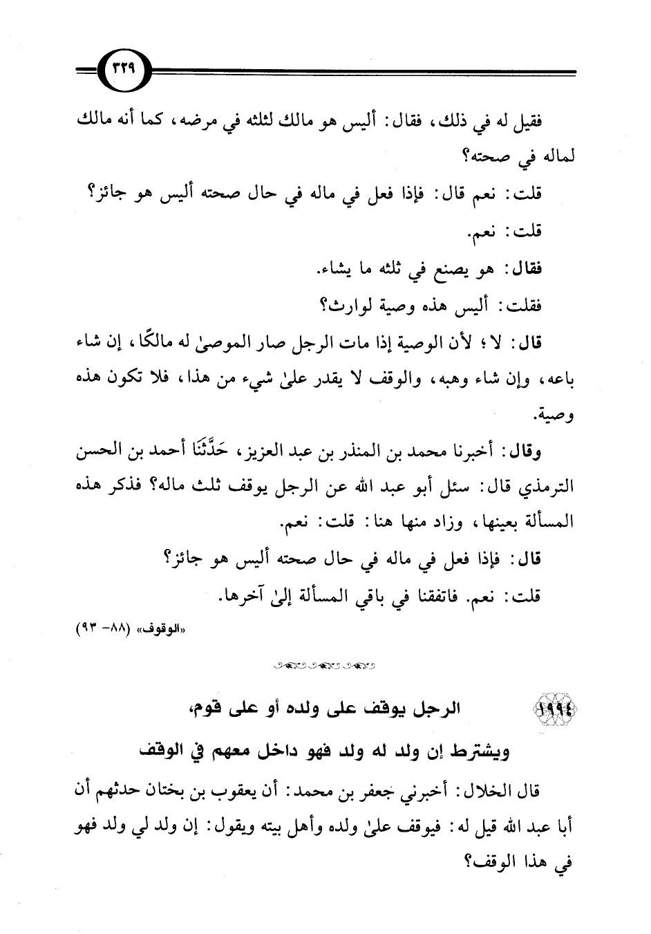 1994 - الرجل يوقف على ولده أو على قوم، ويشترط إن ولد له ولد فهو داخل معهم في الوقف