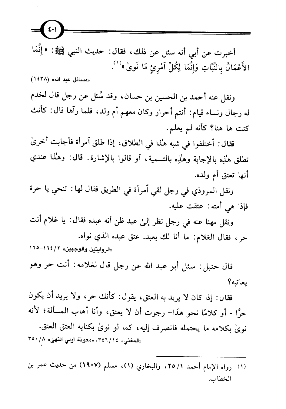 (¬1) رواه الإمام أحمد 1/ 25، والبخاري (1)، مسلم (1907) من حديث عمر بن الخطاب.
