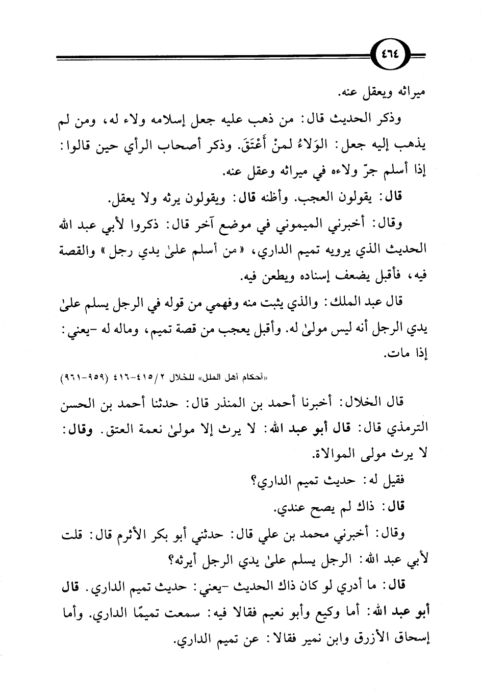 "أحكام أهل الملل" للخلال 2/ 415 - 416 (959 - 961)