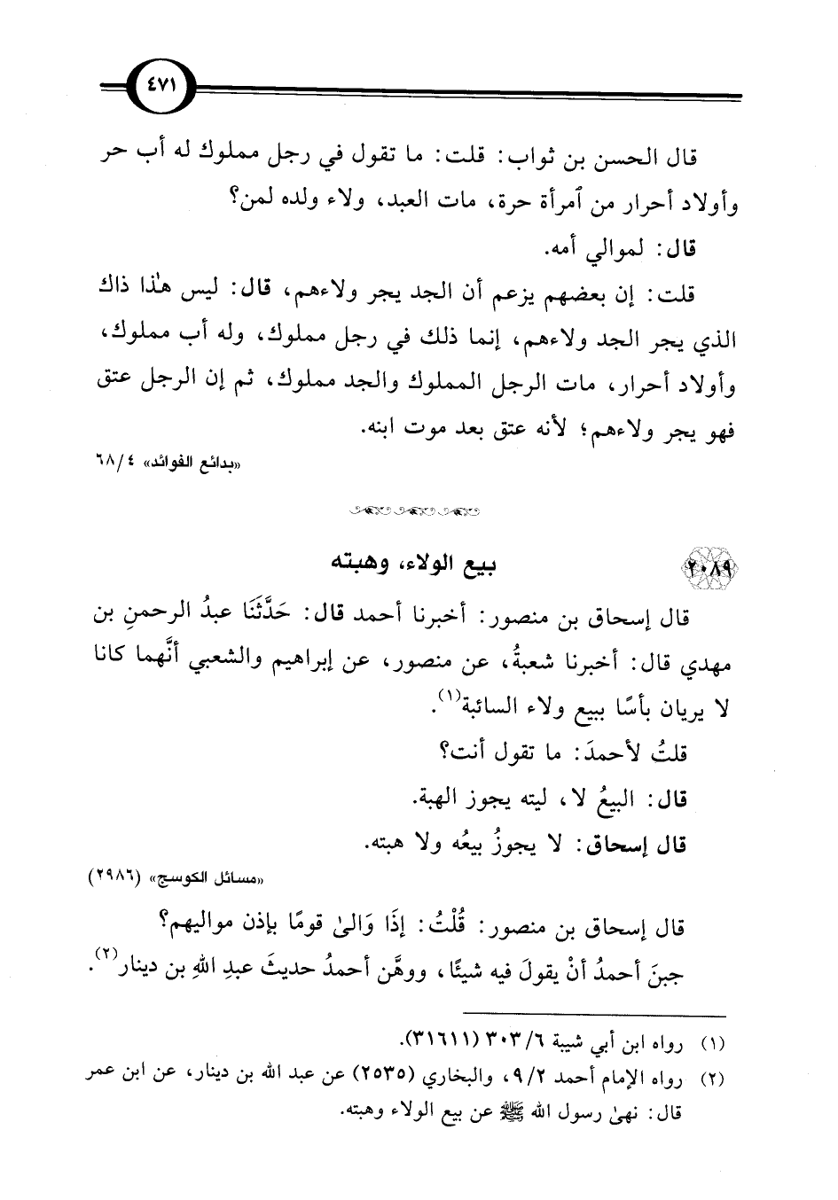 (¬2) رواه الإمام أحمد 2/ 9، والبخاري (2535) عن عبد اللَّه بن دينار، عن ابن عمر قال: نهى رسول اللَّه -صلى اللَّه عليه وسلم- عن بيع الولاء وهبته.