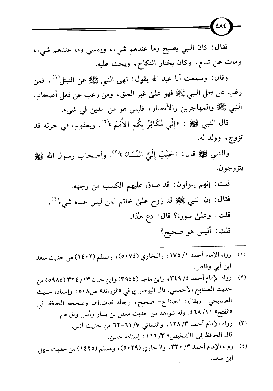 (¬4) رواه الإمام أحمد 3/ 330، والبخاري (5029)، ومسلم (1425) من حديث سهل ابن سعد.