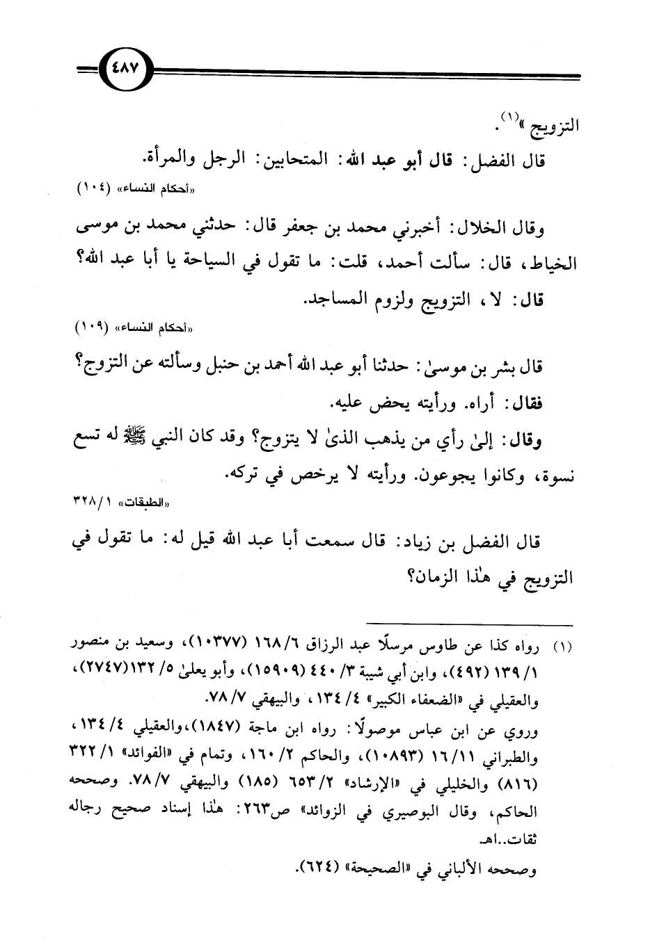 قال بشر بن موسى: حدثنا أبو عبد اللَّه أحمد بن حنبل وسألته عن التزوج؟