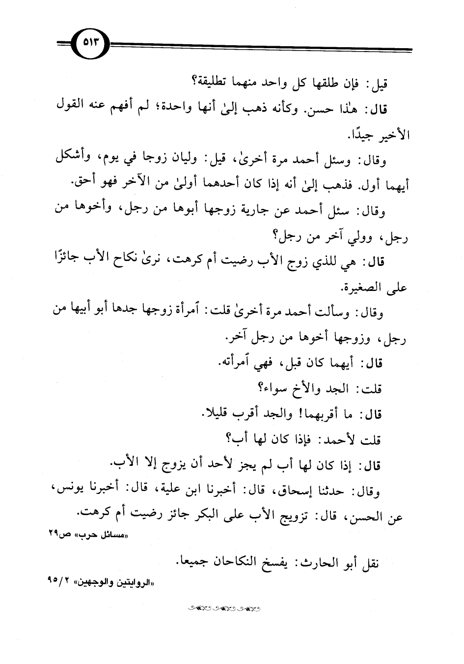 وقال: وسألت أحمد مرة أخرى قلت: امرأة زوجها جدها أبو أبيها من رجل، وزوجها أخوها من رجل آخر.