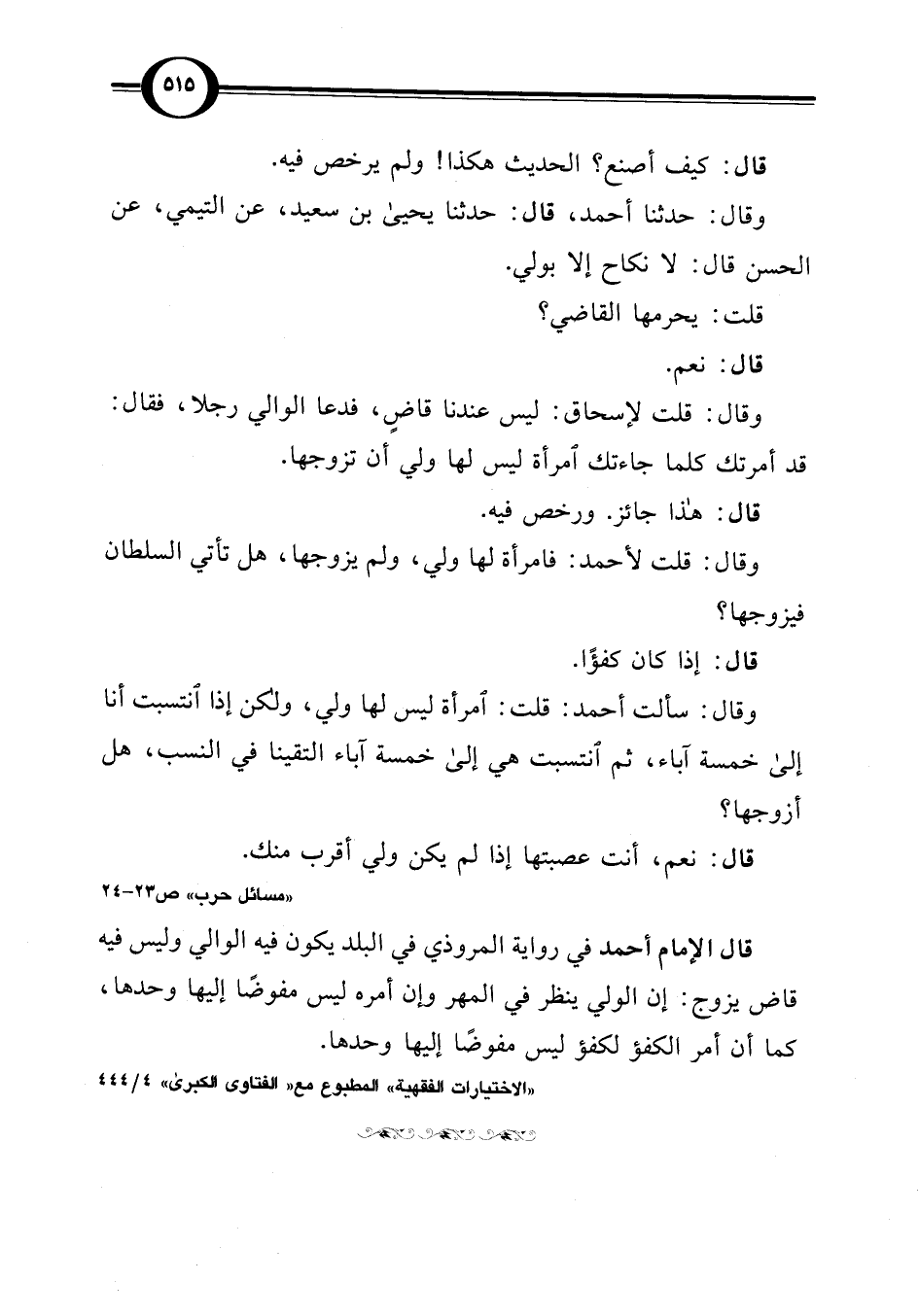 "الاختيارات الفقهية" المطبوع مع "الفتاوى الكبرى" 4/ 444