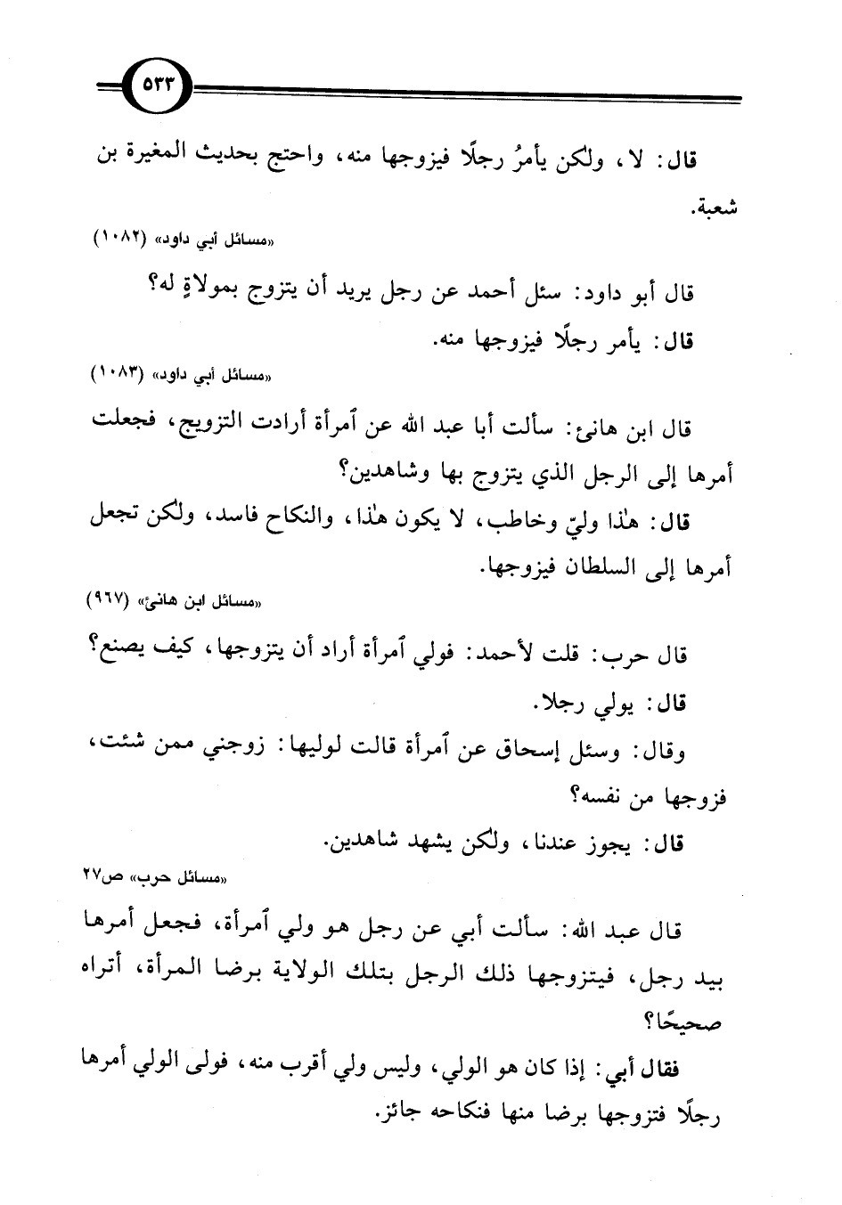 قال أبو داود: سئل أحمد عن رجل يريد أن يتزوج بمولاةٍ له؟
