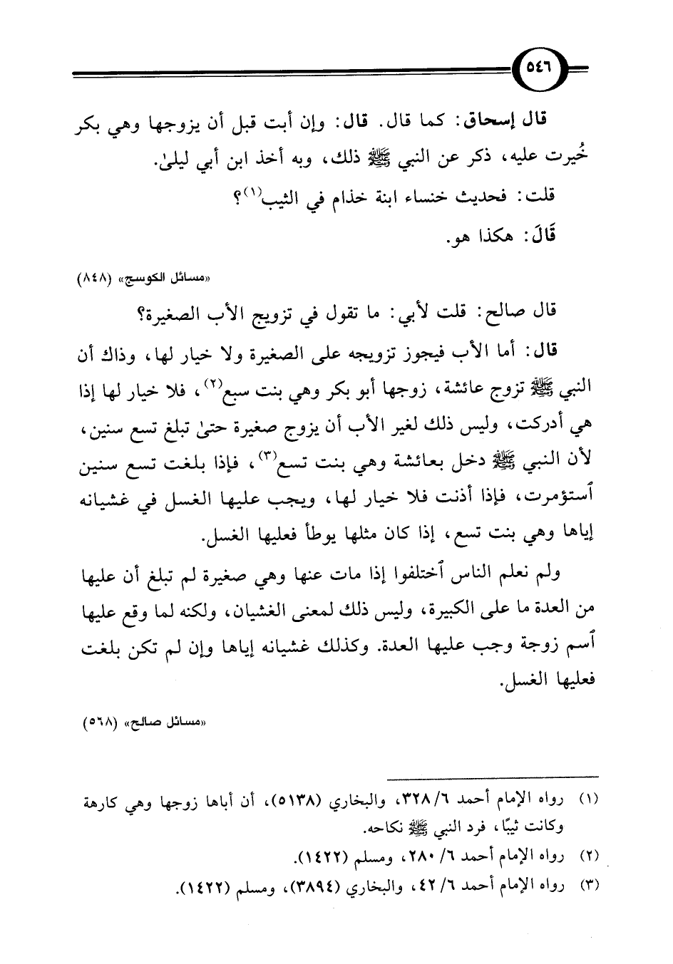 قال صالح: قلت لأبي: ما تقول في تزويج الأب الصغيرة؟