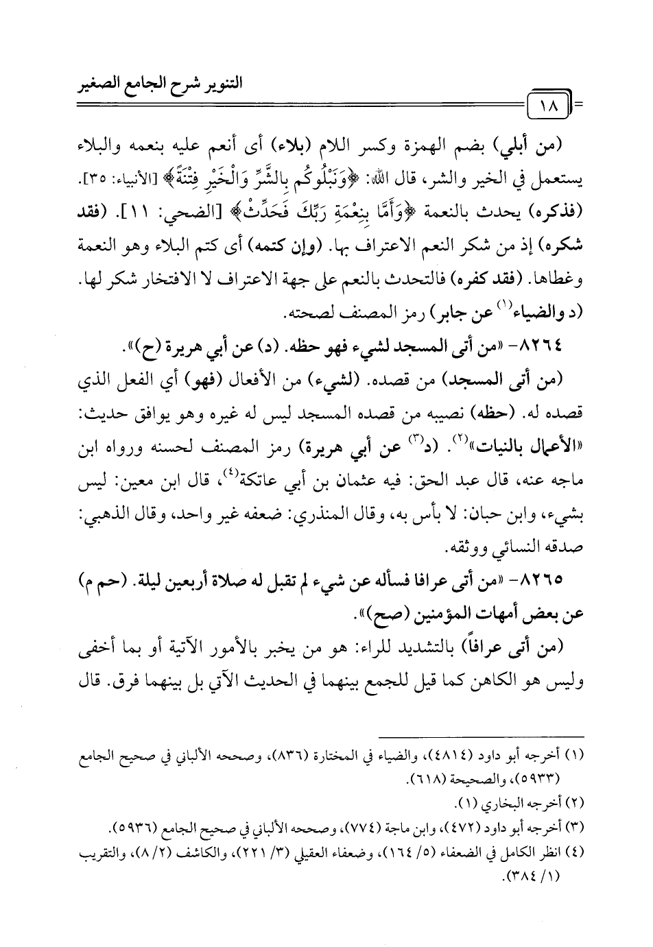 8264 - "من أتى المسجد لشيء فهو حظه. (د) عن أبي هريرة (ح) ".