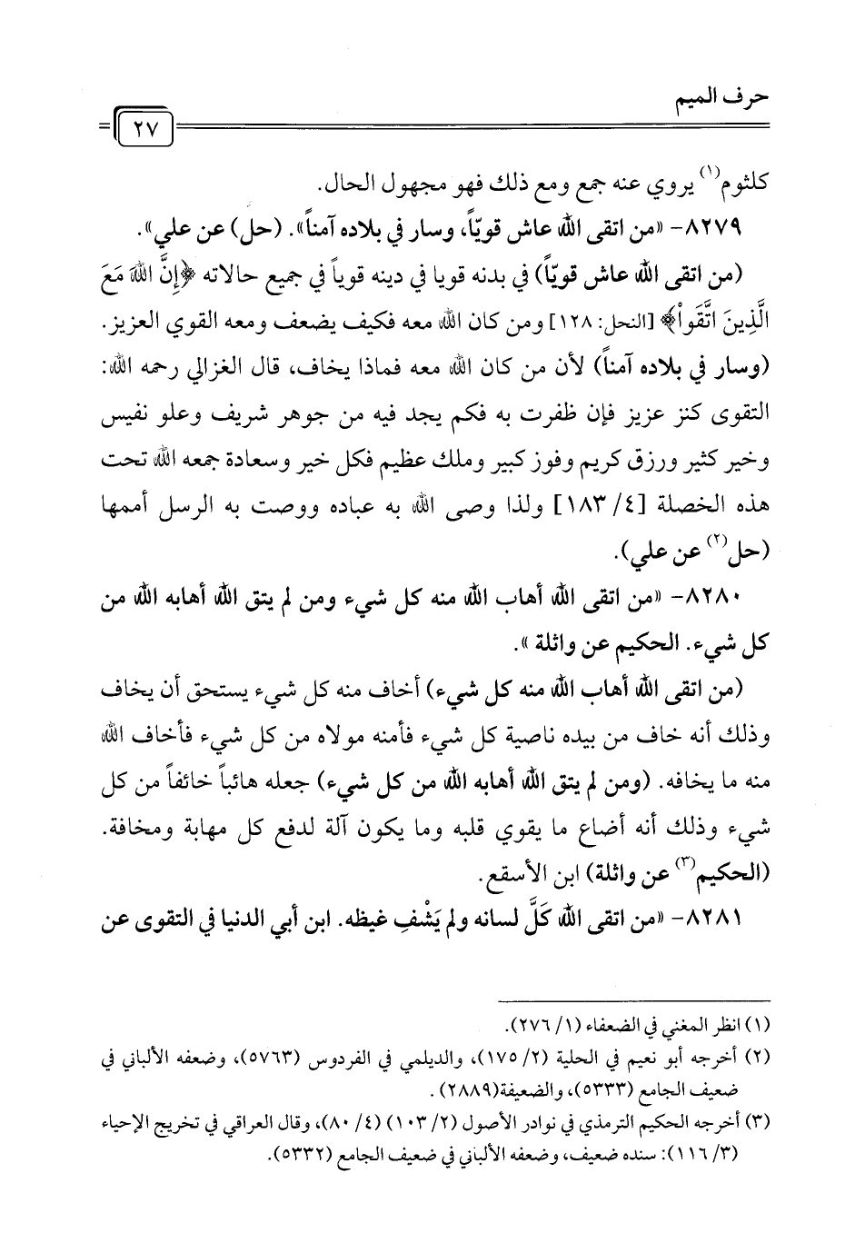 8280 - "من اتقى الله أهاب الله منه كل شيء ومن لم يتق الله أهابه الله من كل شيء. الحكيم عن واثلة".