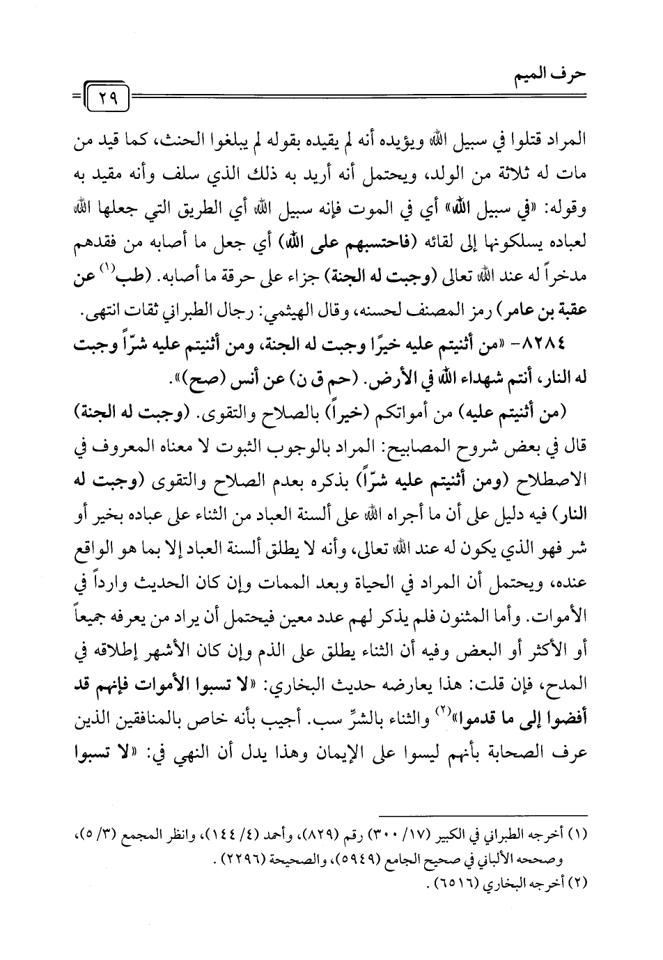 8284 - "من أثنيتم عليه خيرًا وجبت له الجنة، ومن أثنيتم عليه شرًّا وجبت له النار، أنتم شهداء الله في الأرض. (حم ق ن) عن أنس (صح) ".