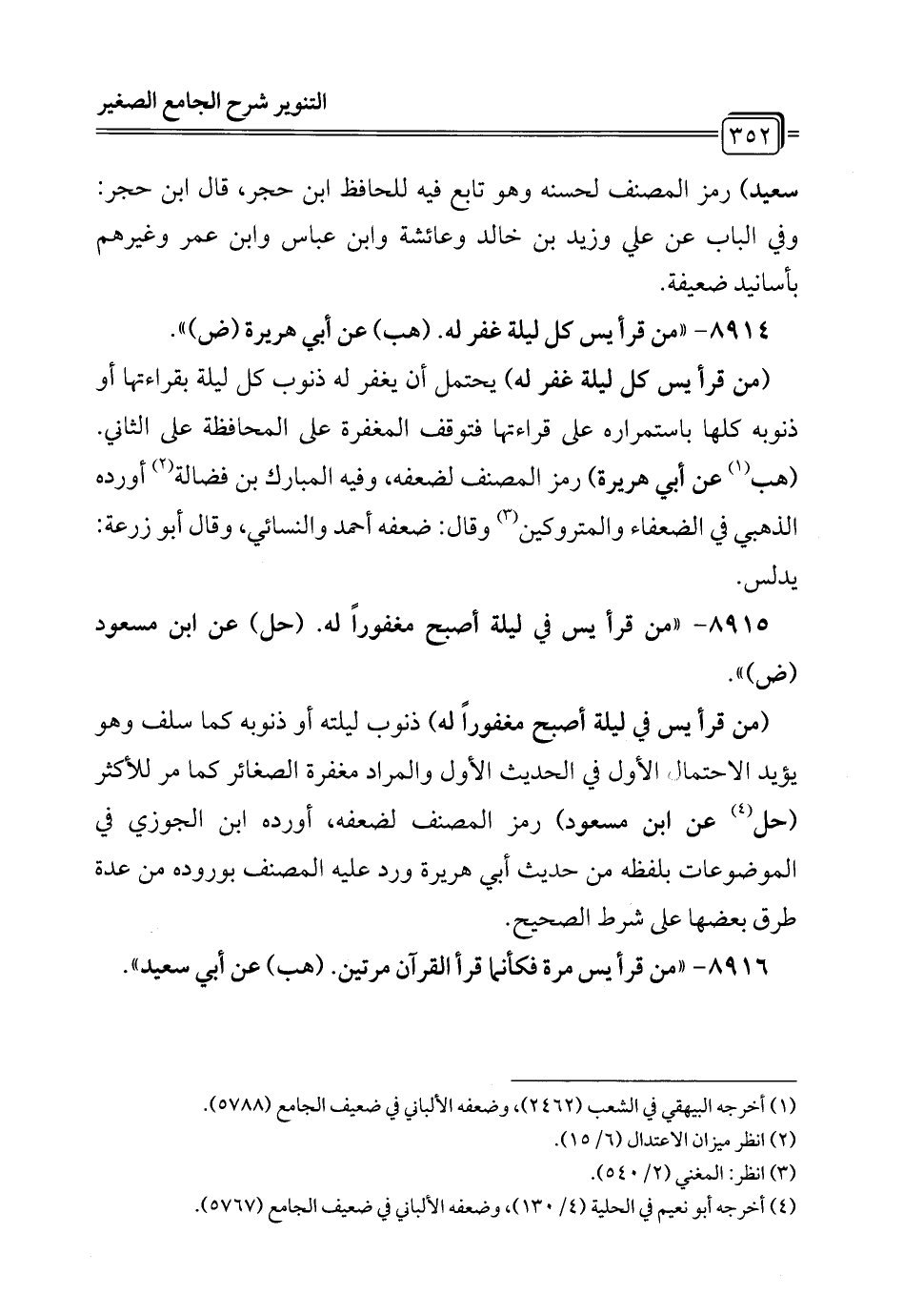 8915 - "من قرأ يس في ليلة أصبح مغفورًا له. (حل) عن ابن مسعود (ض) ".