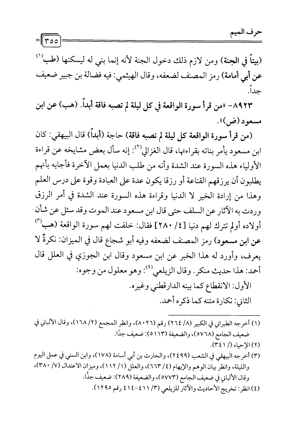 8923 - "من قرأ سورة الواقعة في كل ليلة لم تصبه فاقة أبدًا. (هب) عن ابن مسعود (ض) ".