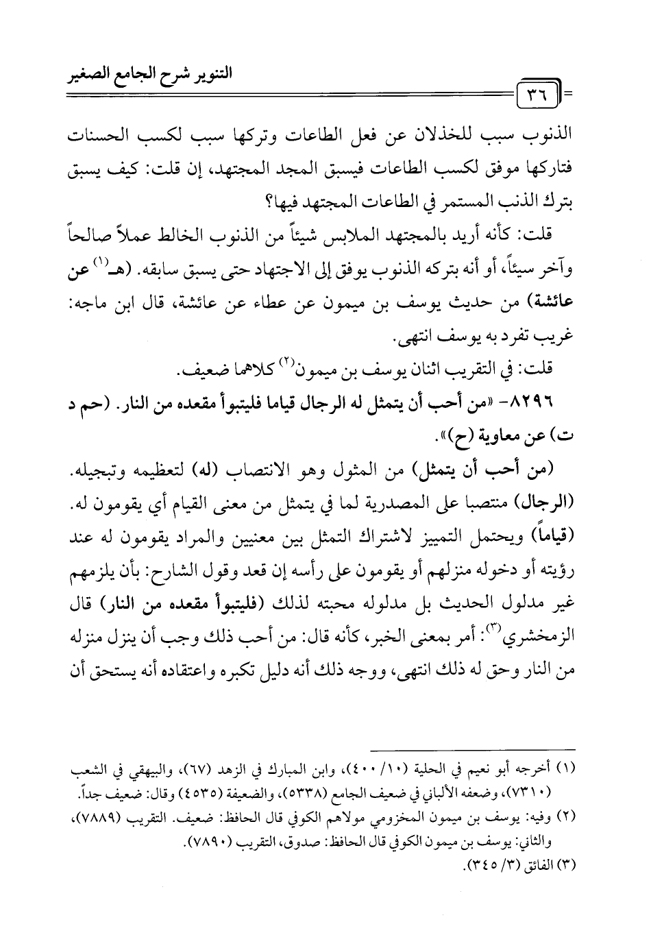 8296 - "من أحب أن يتمثل له الرجال قياما فليتبوأ مقعده من النار. (حم د ت) عن معاوية (ح) ".