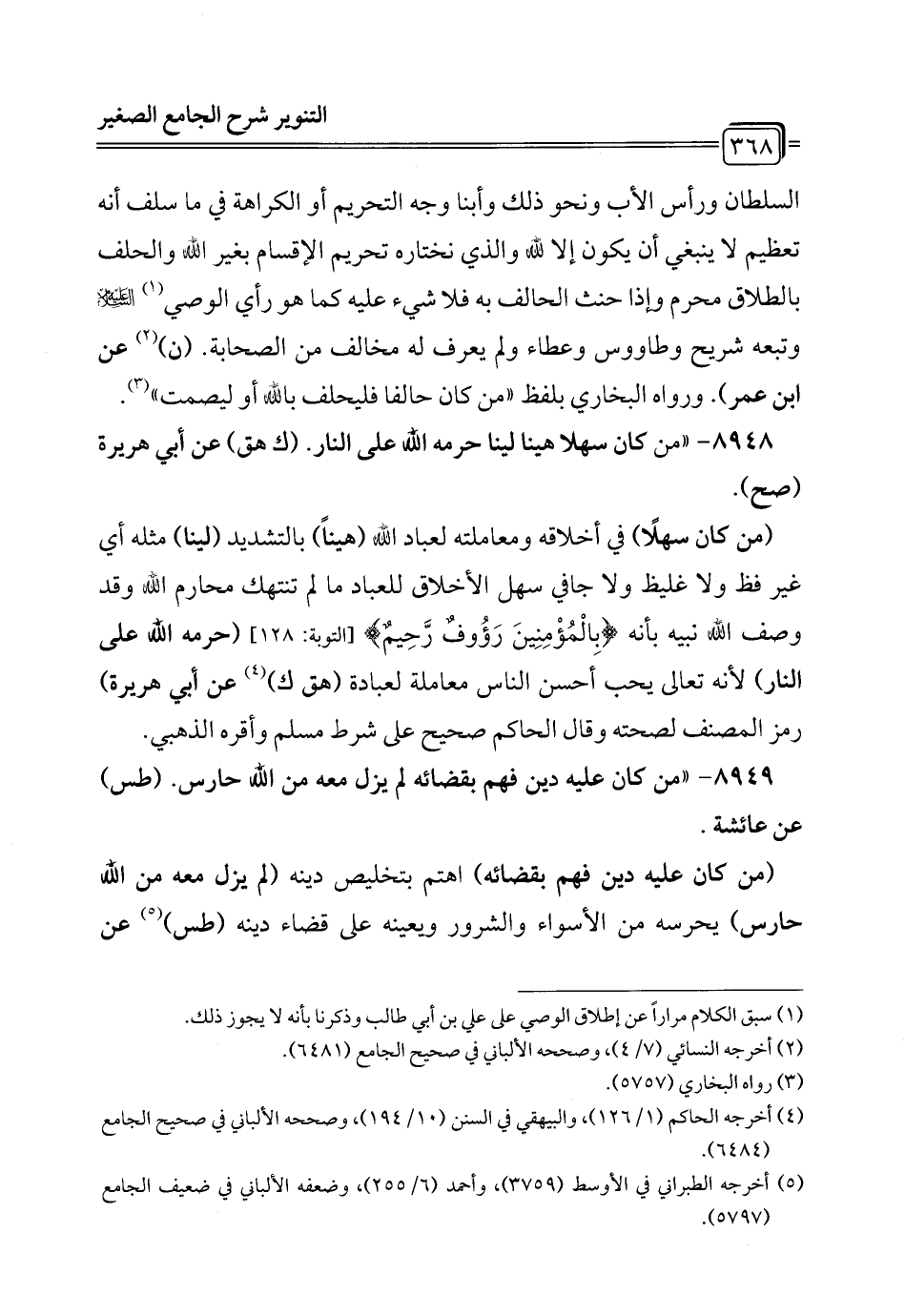 8948 - "من كان سهلًا هينًا لينًا حرمه الله على النار. (ك هق) عن أبي هريرة (صح).