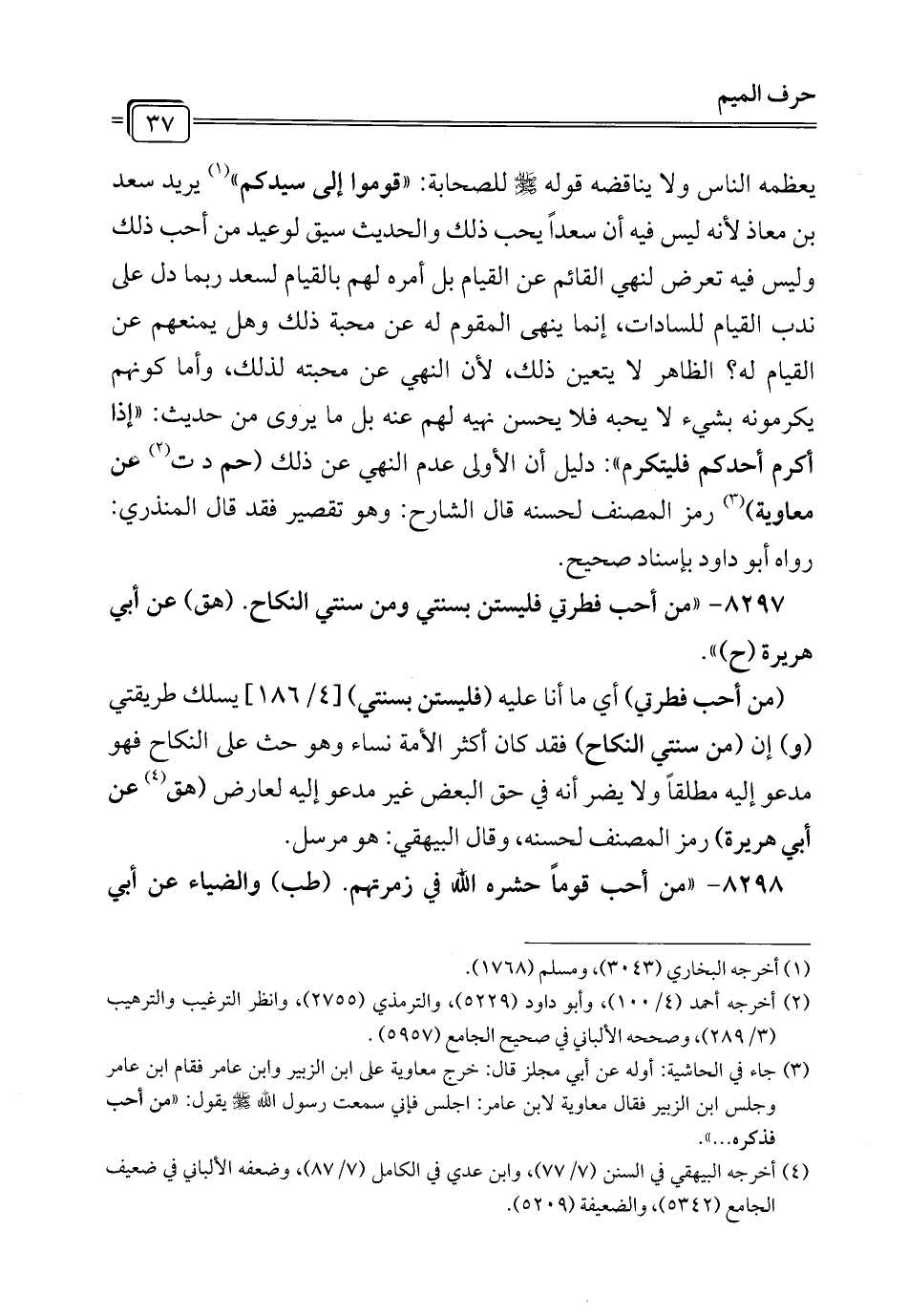 8297 - "من أحب فطرتي فليستن بسنتي ومن سنتي النكاح. (هق) عن أبي هريرة (ح) ".