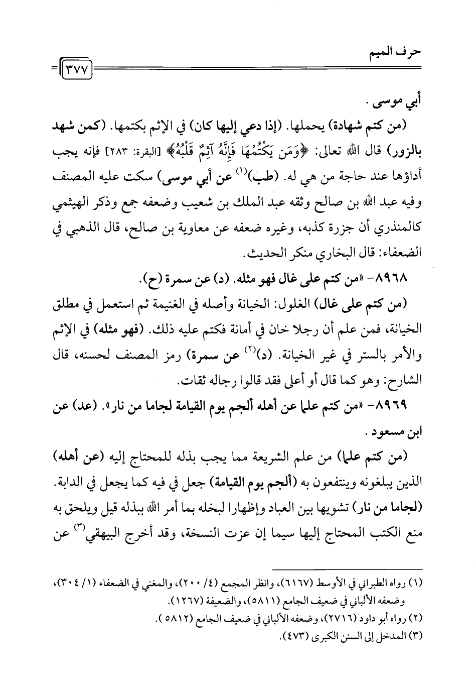8968 - "من كتم على غال فهو مثله. (د) عن سمرة (ح).