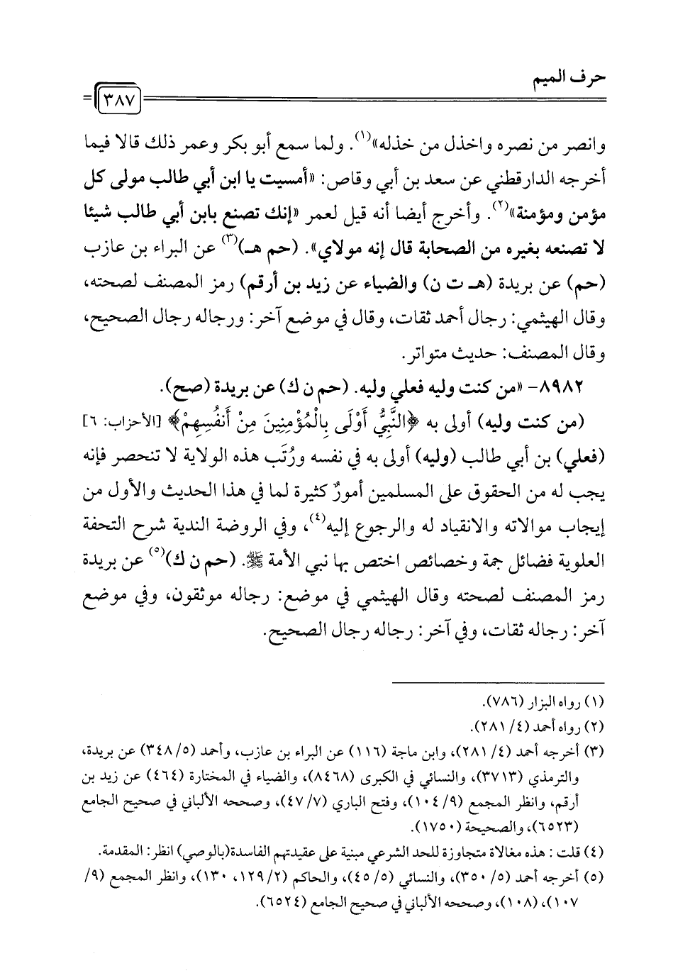 8982 - "من كنت وليه فعلي وليه. (حم ن ك) عن بريدة (صح).