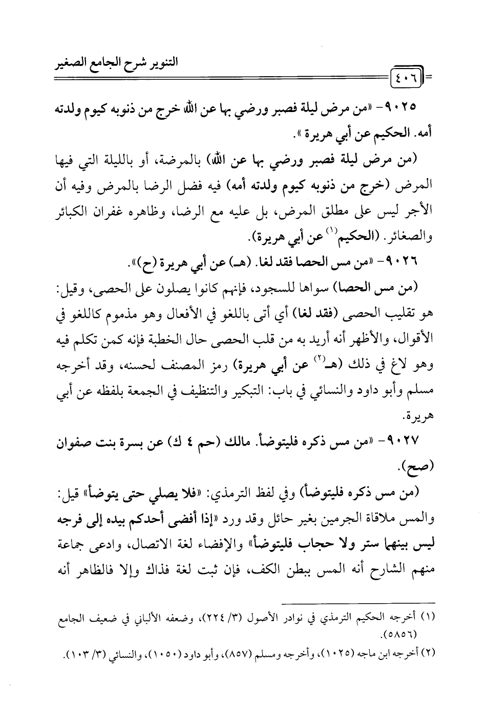 9025 - "من مرض ليلة فصبر ورضي بها عن الله خرج من ذنوبه كيوم ولدته أمه. الحكيم عن أبي هريرة".