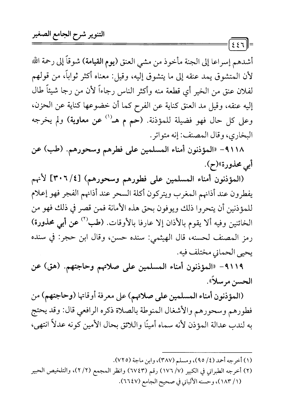 9118 - "المؤذنون أمناء المسلمين على فطرهم وسحورهم. (طب) عن أبي محذورة" (ح).