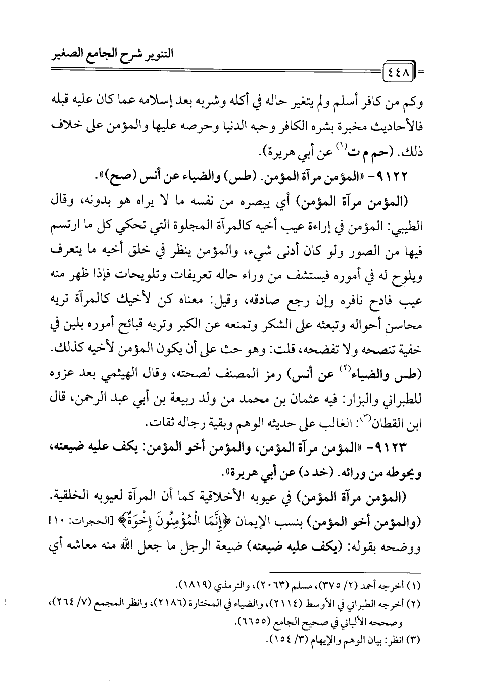 9122 - "المؤمن مرآة المؤمن. (طس) والضياء عن أنس (صح) ".