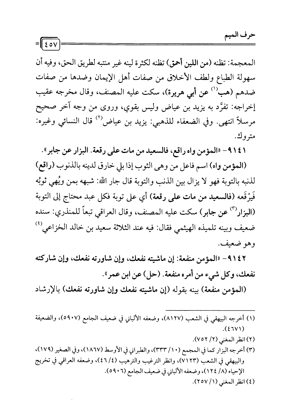 (¬3) أخرجه البزار كما في المجمع (10/ 333)، والطبراني في الأوسط (1867)، وفي الصغير (179)، والبيهقي في الشعب (7123)، وانظر الترغيب والترهيب (4/ 46)، وضعفه العراقي في تخريج الإحياء (8/ 124)، وضعفه الألباني في ضعيف الجامع (5906).