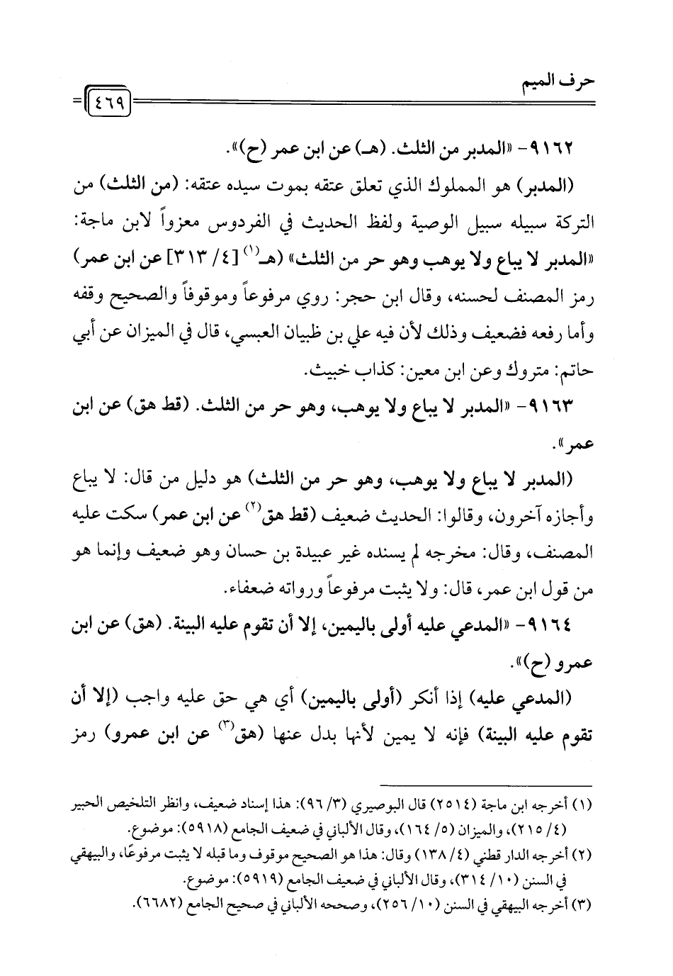 9162 - "المدبر من الثلث. (هـ) عن ابن عمر (ح) ".