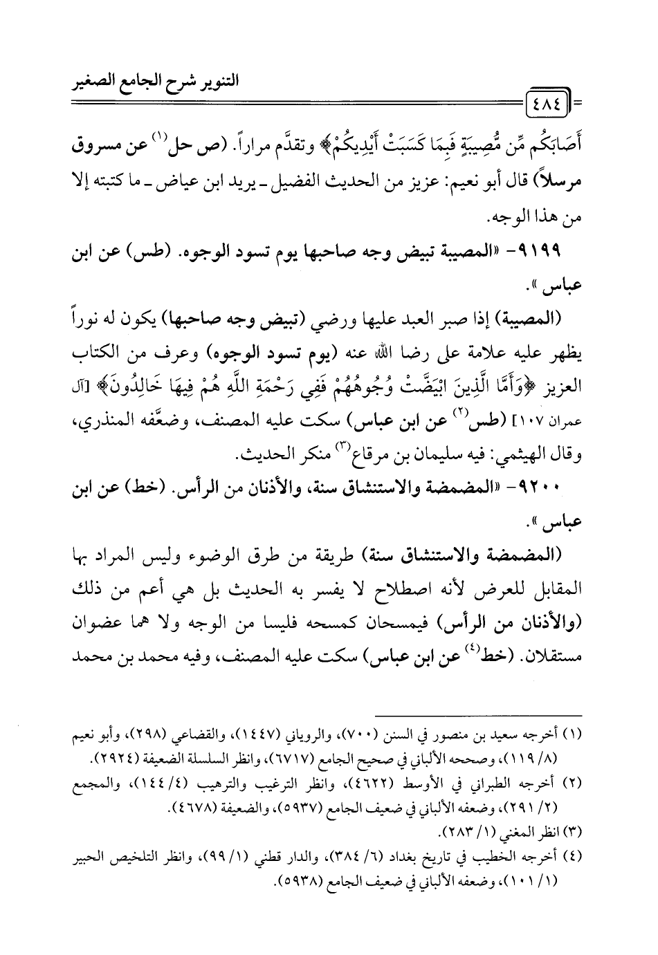 9199 - "المصيبة تبيض وجه صاحبها يوم تسود الوجوه. (طس) عن ابن عباس".