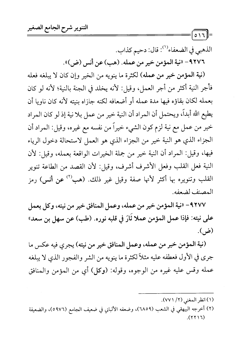 9276 - "نية المؤمن خير من عمله. (هب) عن أنس (ض) ".