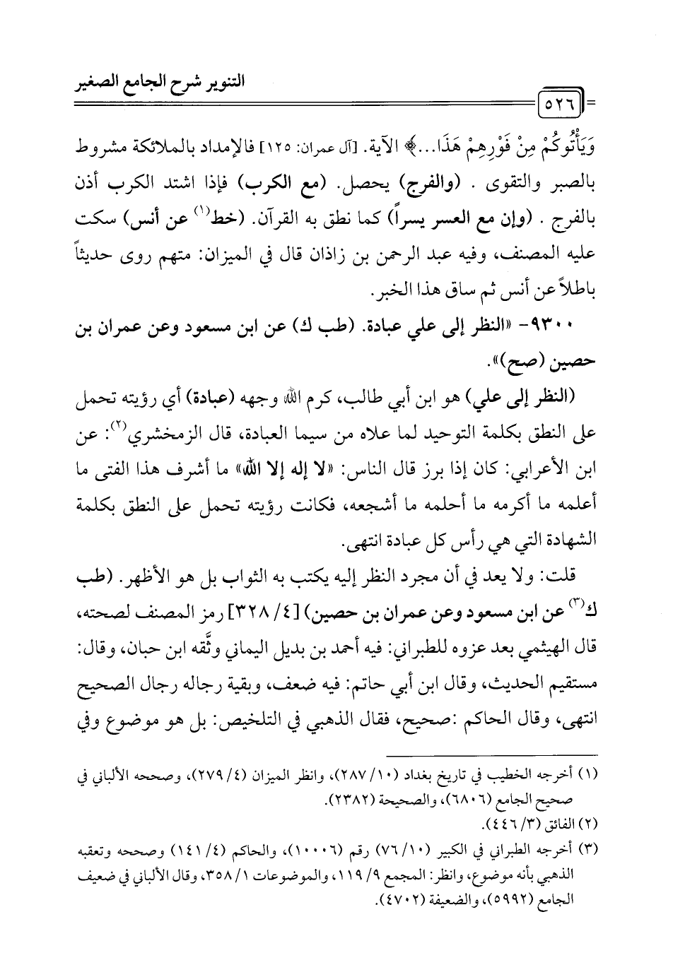 9300 - "النظر إلى علي عبادة. (طب ك) عن ابن مسعود وعن عمران بن حصين (صح) ".