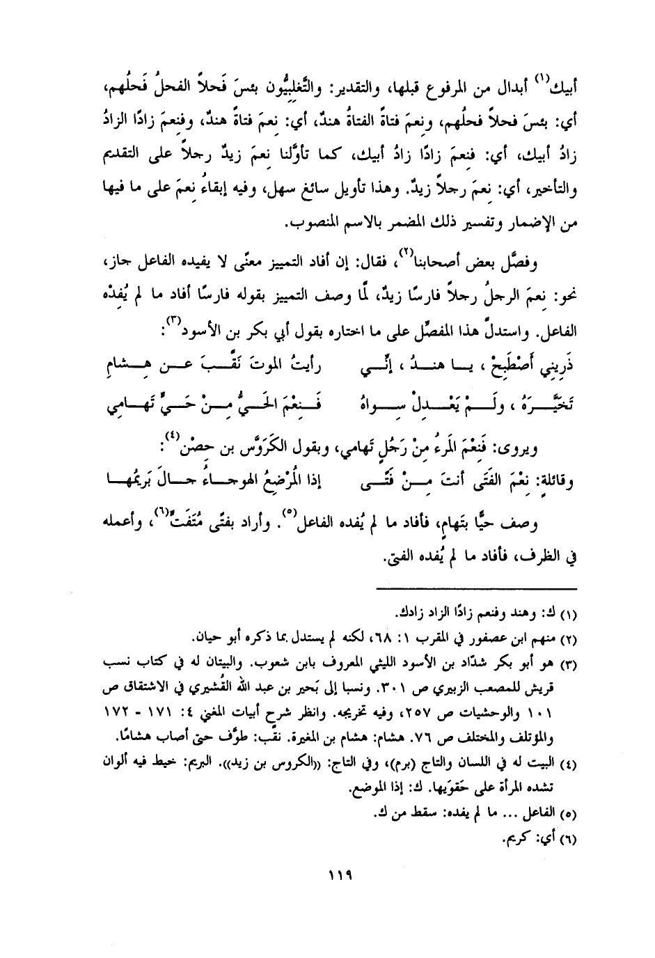 الفاعل. واستدلَّ هذا المفصَّل على ما اختاره بقول أبي بكر بن الأسود: