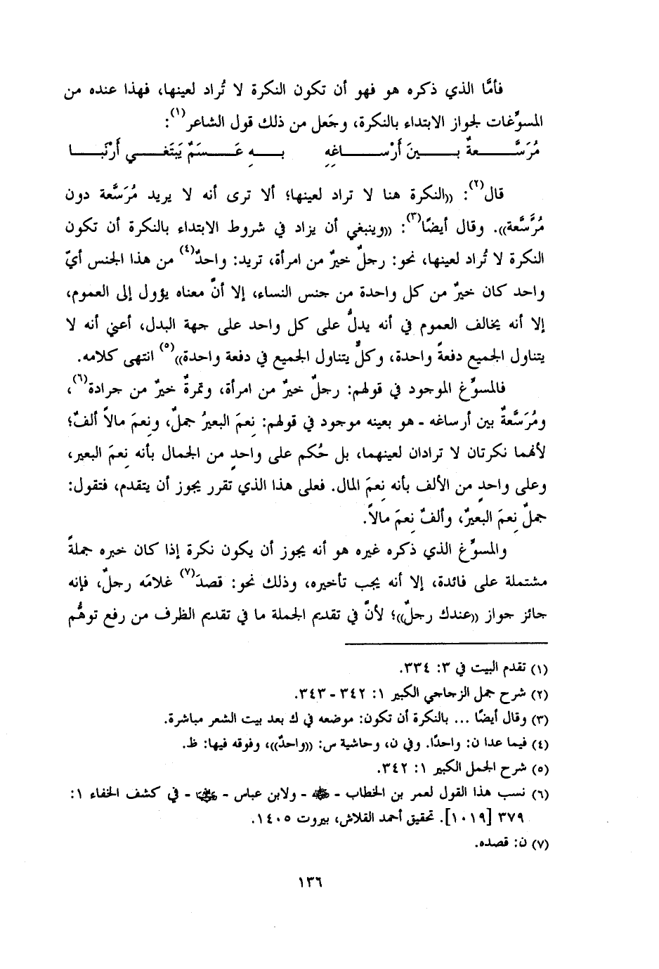 فأمَّا الذي ذكره هو فهو أن تكون النكرة لا تُراد لعينها، فهذا عنده من المسوِّغات لجواز الابتداء بالنكرة، وجَعل من ذلك قول الشاعر: