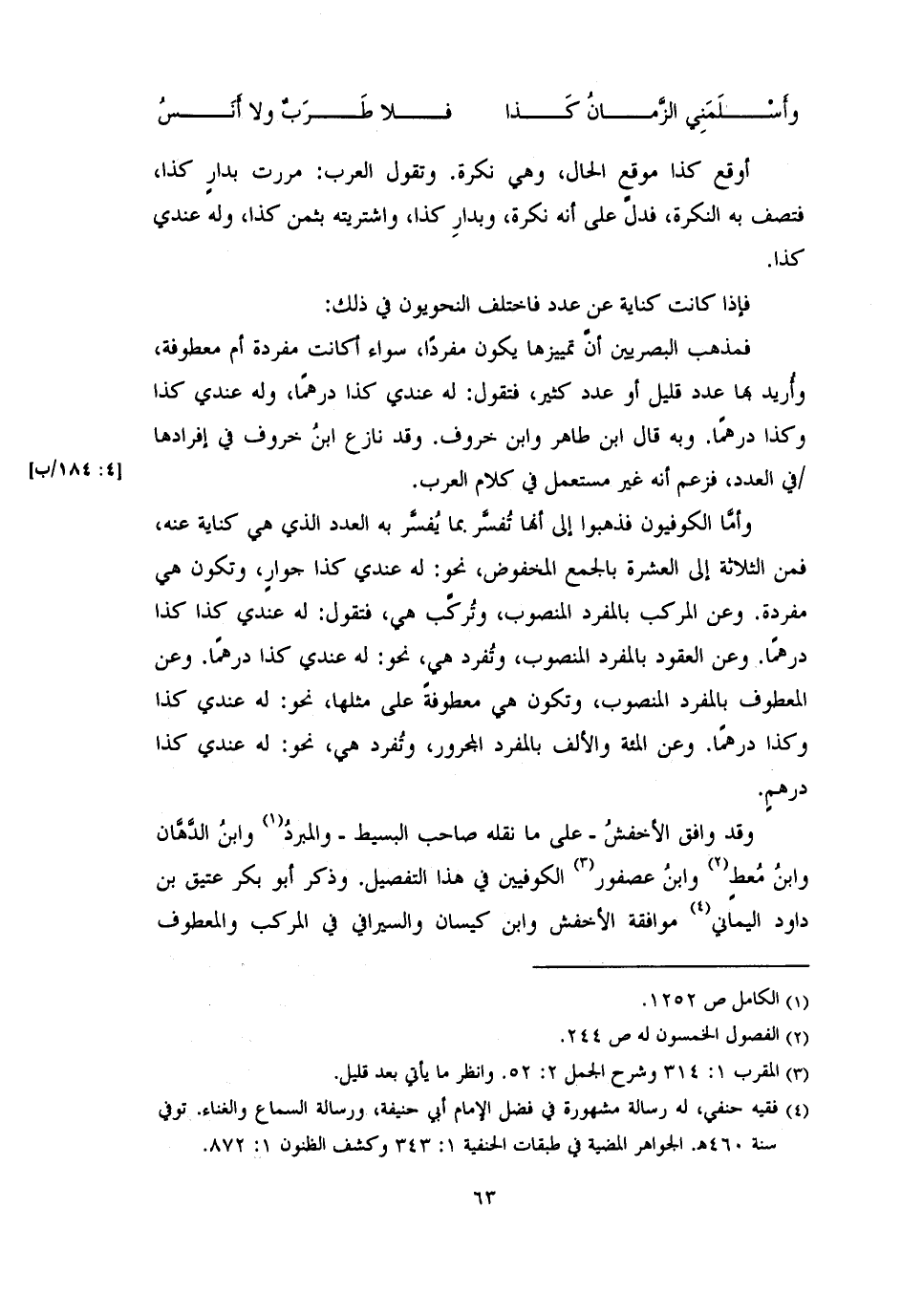 وقد وافق الأخفشُ ــ على مت نقله صاحب البسيط ــ والمبردُ وابنُ الدَّهَّان وابن مُعط وابن عصفور الكوفيين في هذا الفصل. وذكر أبو بكر عتيق بن داود اليماني موافقة الأخفش وابن كيسان والسيرافي في المركب والمعطوف