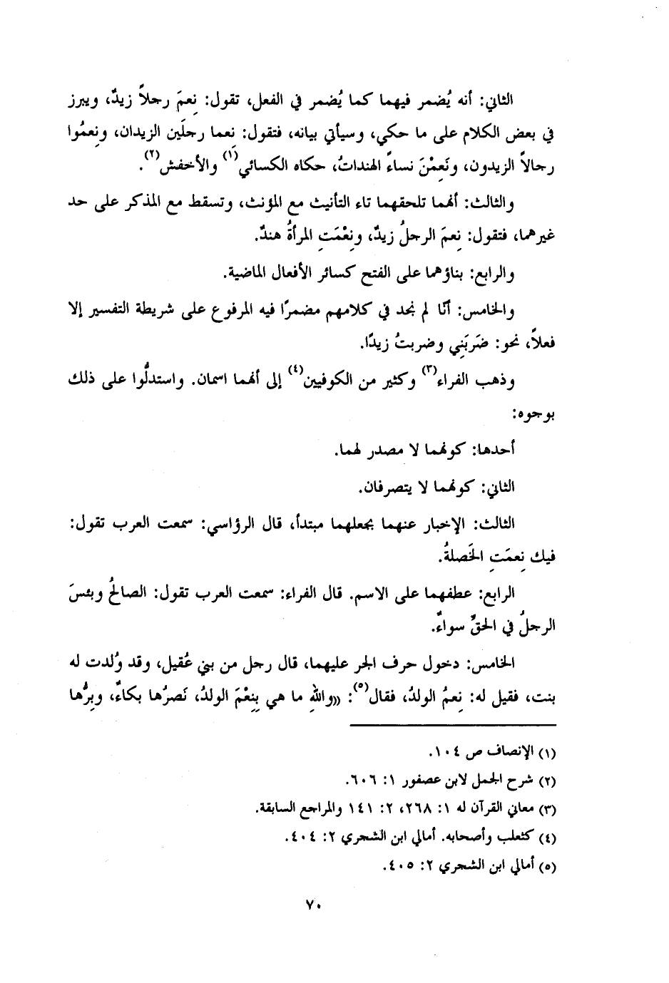 الخامس: دخول حرف الجر عليهما، قال رجل من بني عُقيل، وقد وُلدت له بنت، فقيل له: نِعمُ الولدُ، فقال: «والله ما هي بِنِعْمَ الولدُ، نَصرُها بكاءُ، وبرُّها