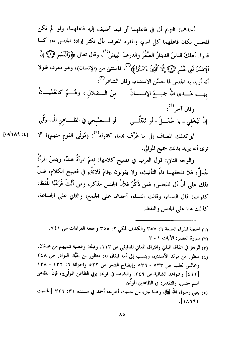 والوجه الثاني: قول العرب في فصيح كلامها: نعمَ المرأةُ هندٌ، وبئسَ المرأةُ جُملٌ، فلا تلحقهما تاءَ التأنيث، ولا يقولون «قامَ فلانةُ» في فصيح الكلام، فدلَّ ذلك على أنَّ أل للجنس، فمن ذَكَّرَ فلأنَّ الجنس مذكر، ومن أَّنَّثَ فَرَعْيًا للَّفظ،