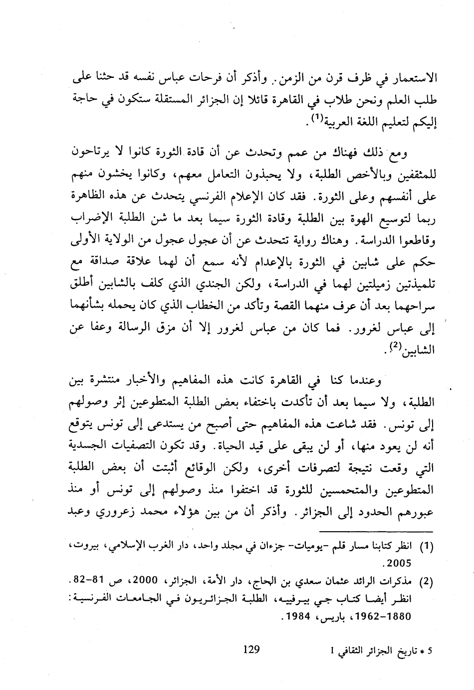 (2) مذكرات الرائد عثمان سعدي بن الحاج، دار الأمة، الجزائر، 2000، ص 81 - 82، انظر أيضا كتاب جي بيرفييه، الطلبة الجزائريون في الجامعات الفرنسية: 1880 - 1962، باريس، 1984.