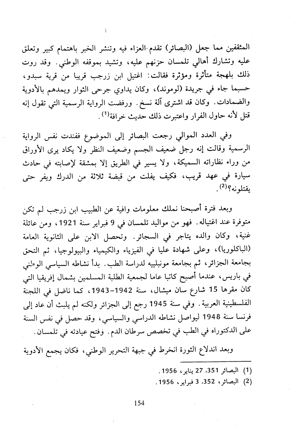 (1) البصائر 351، 27 يناير، 1956.