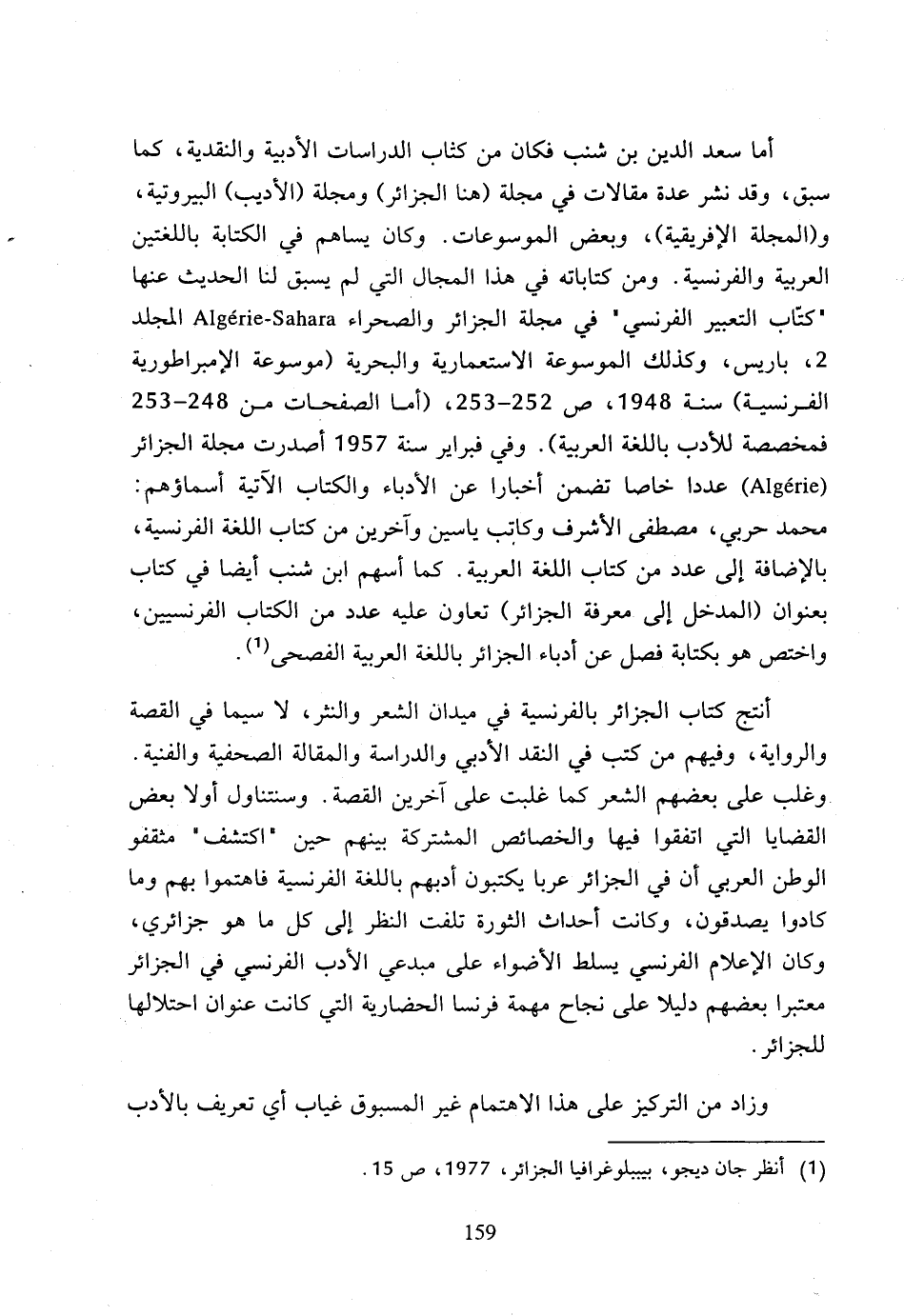 (1) أنظر جان ديجو، بيبلوغرافيا الجزائر، 1977، ص 15.
