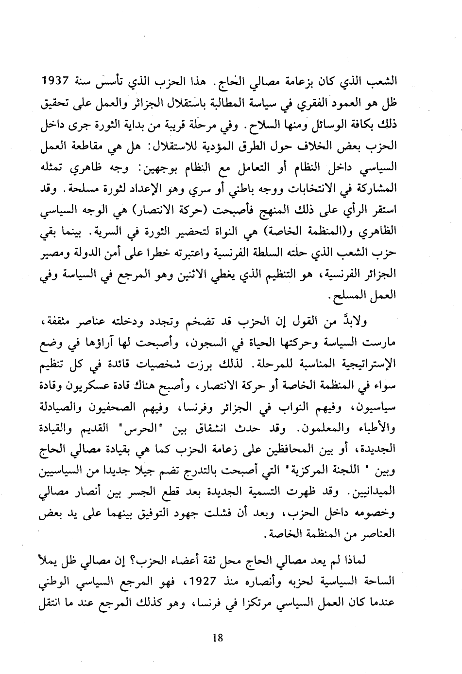 لماذا لم يعد مصالي الحاج محل ثقة أعضاء الحزب؟ إن مصالي ظل يملأ الساحة السياسية لحزبه وأنصاره منذ 1927، فهو المرجع السياسي الوطني عندما كان العمل السياسي مرتكزا في فرنسا، وهو كذلك المرجع عند ما انتقل