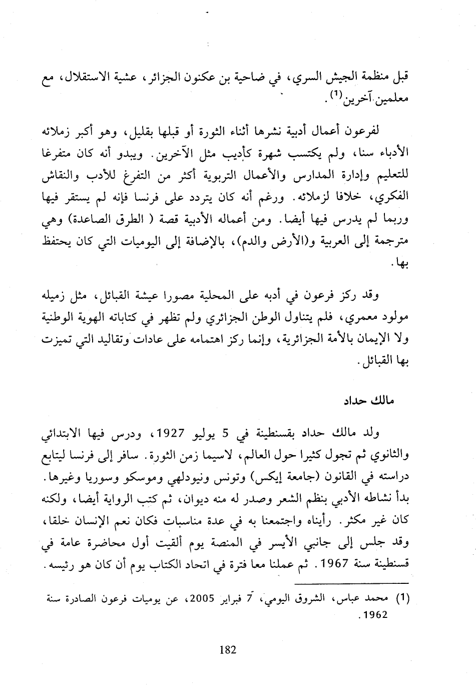 (1) محمد عباس، الشروق اليومي، 7 فبراير 2005، عن يوميات فرعون الصادرة سنة 1962.