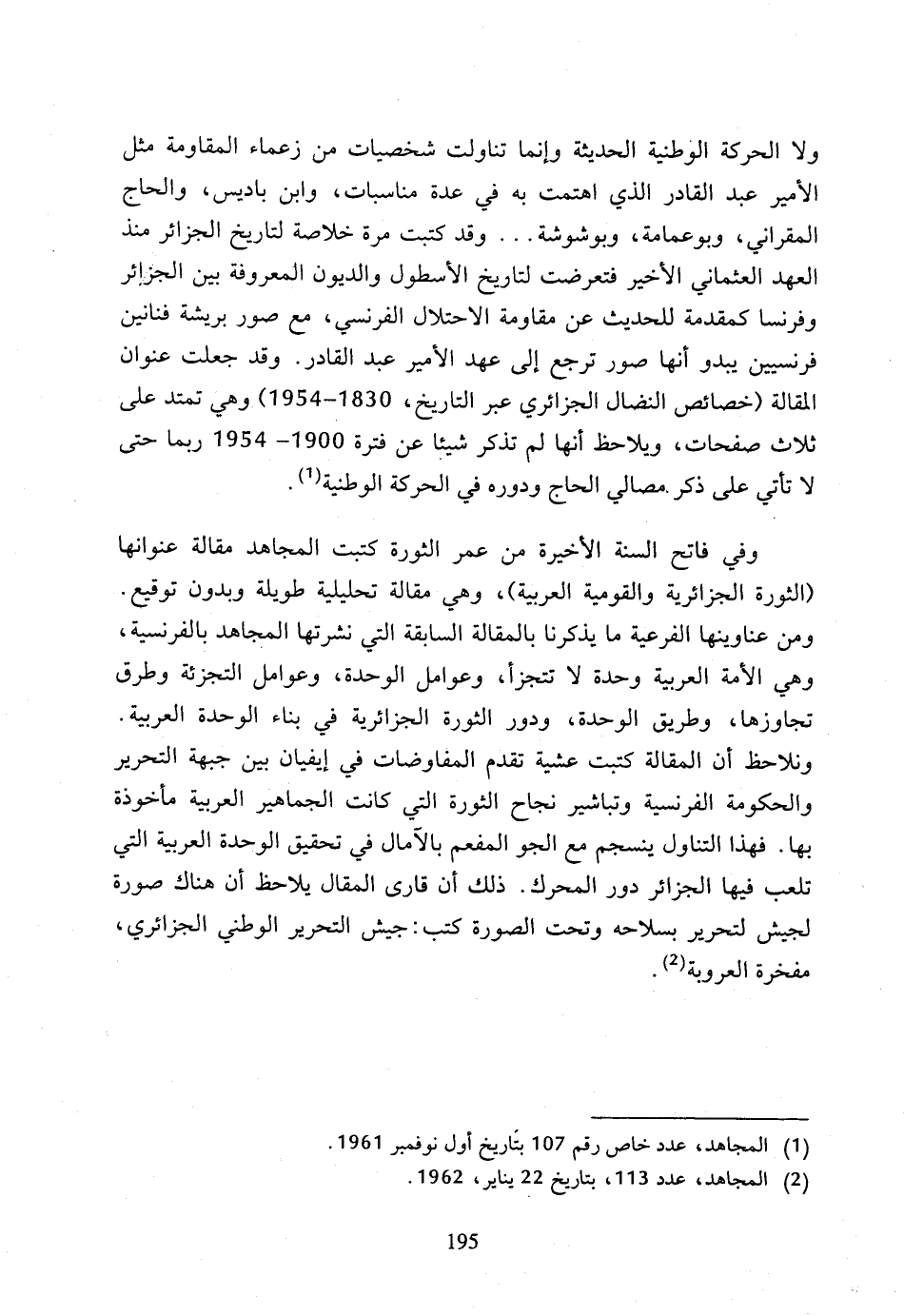 (2) المجاهد، عدد 113، بتاريخ 22 يناير، 1962.
