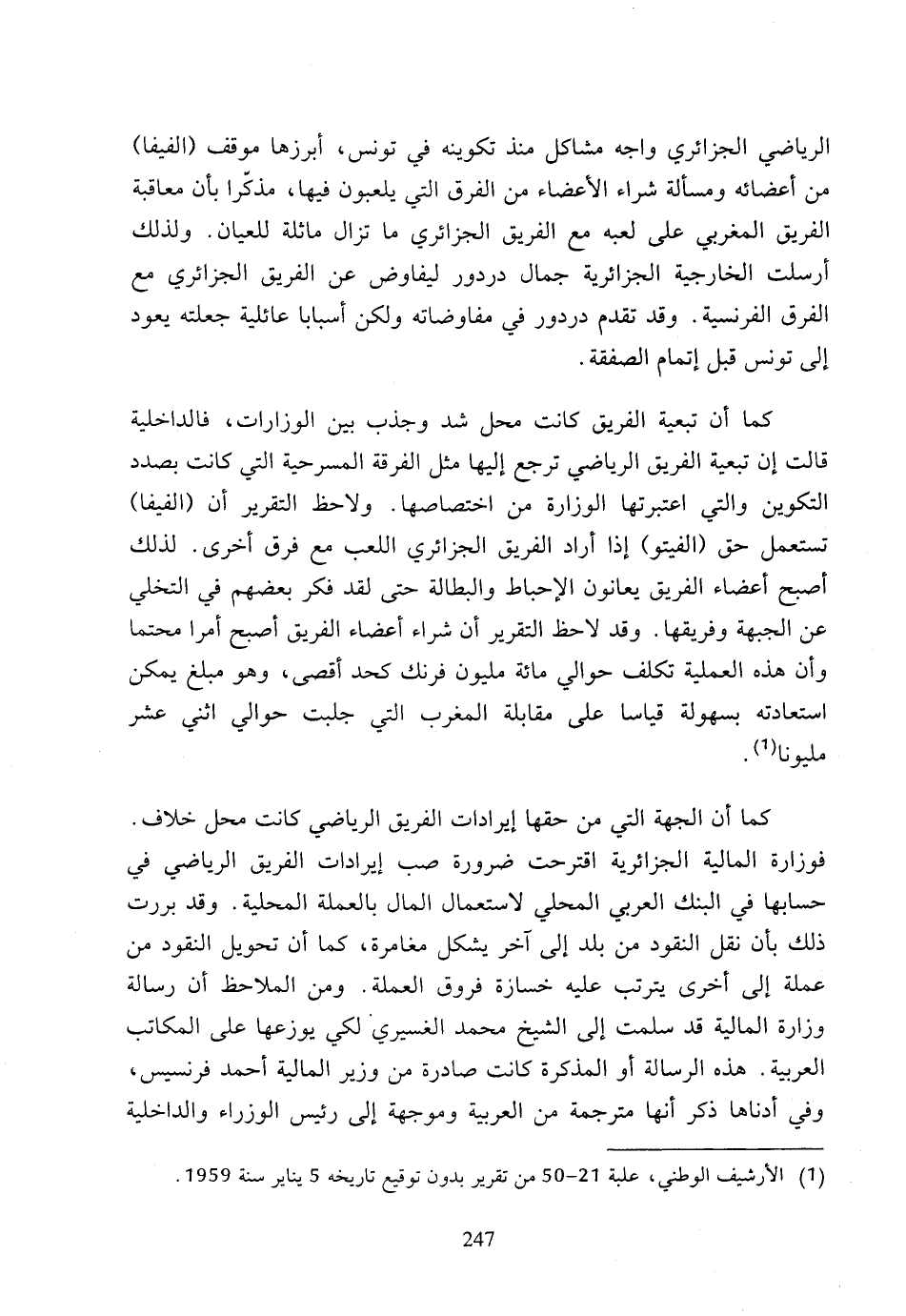 (1) الأرشيف الوطني، علبة 21 - 50 من تقرير بدون توقيع تاريخه 5 يناير سنة 1959.