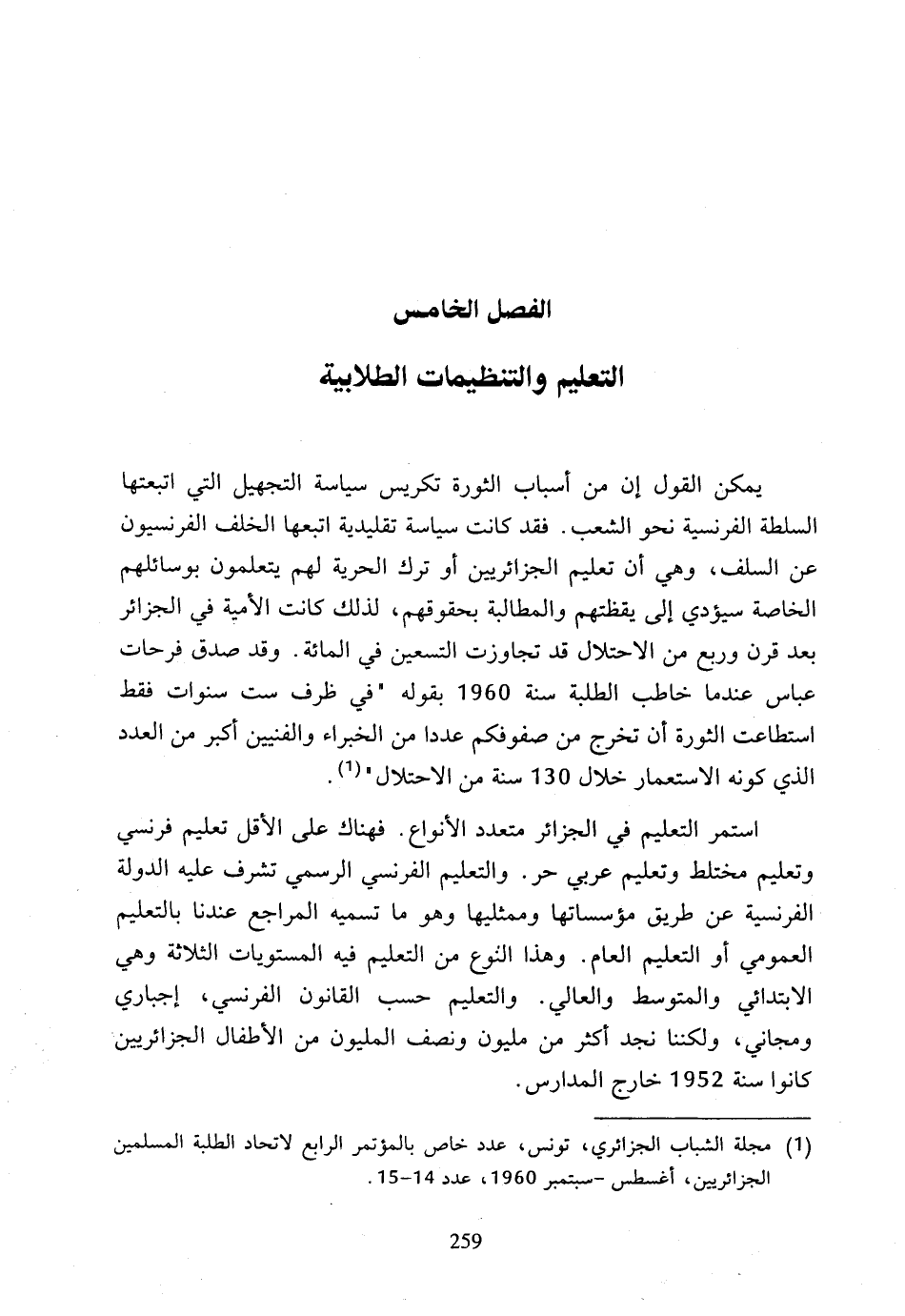(1) مجلة الشباب الجزائري، تونس، عدد خاص بالمؤتمر الرابع لاتحاد الطلبة المسلمين الجزائريين، أغسطس - سبتمبر 1960، عدد 14 - 15.