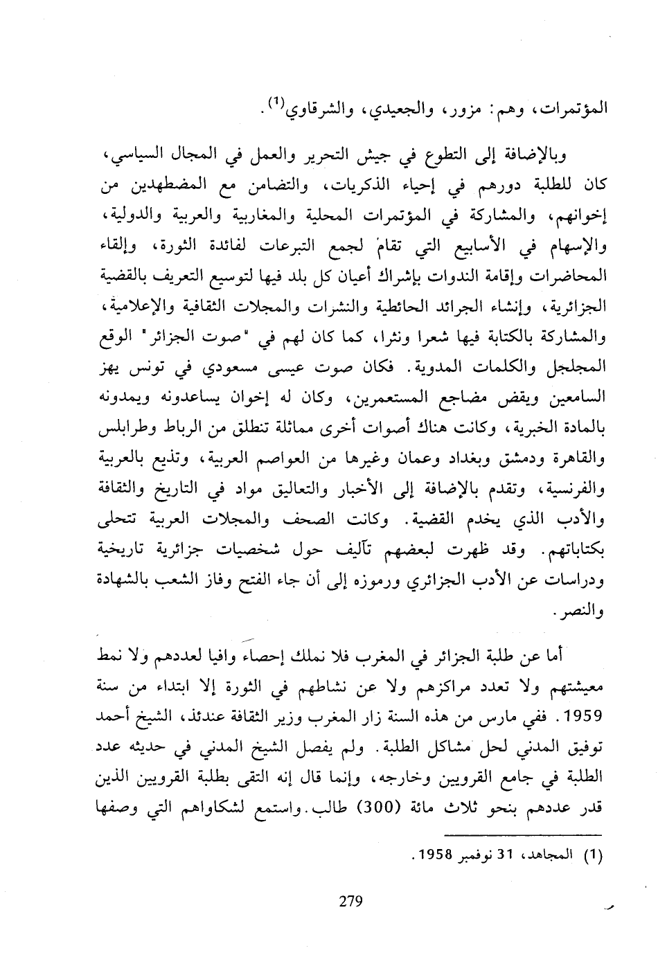 (1) المجاهد، 31 نوفمبر 1958.