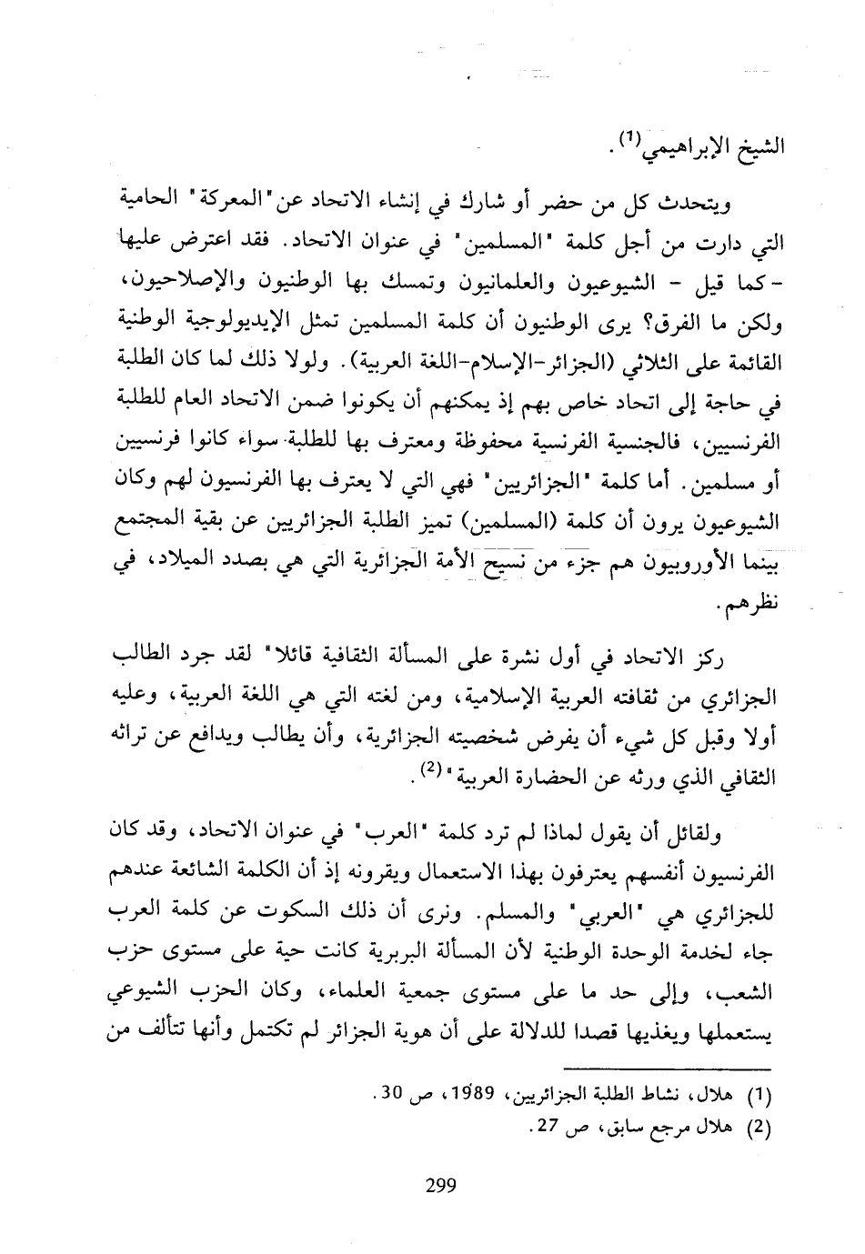 (1) هلال، نشاط الطلبة الجزائريين، 1989، ص 30.