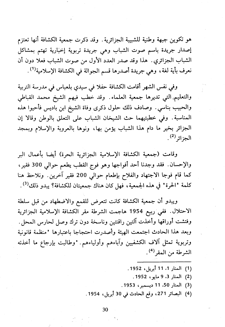 (4) البصائر 271، وقع الحادث في 30 أبريل، 1954.
