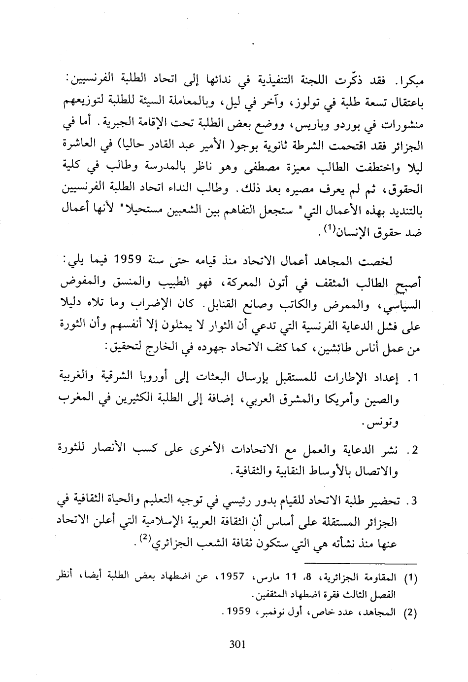 (1) المقاومة الجزائرية، 8، 11 مارس، 1957، عن اضطهاد بعض الطلبة أيضا، أنظر الفصل الثالث فقرة اضطهاد المثقفين.