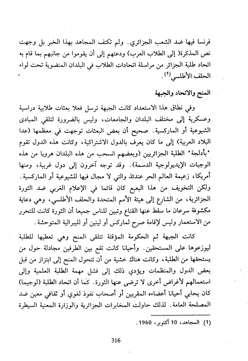 (1) المجاهد، 10 أكتوبر، 1960.