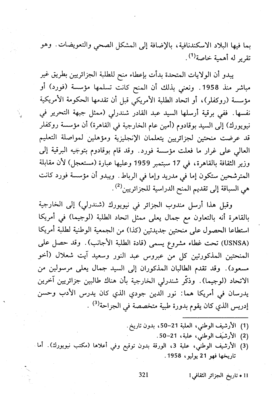 (3) الأرشيف الوطني، علبة 3، الورقة بدون توقيع وفي أعلاها (مكتب نيويورك)، أما تاريخها فهو 21 يوليو، 1958.