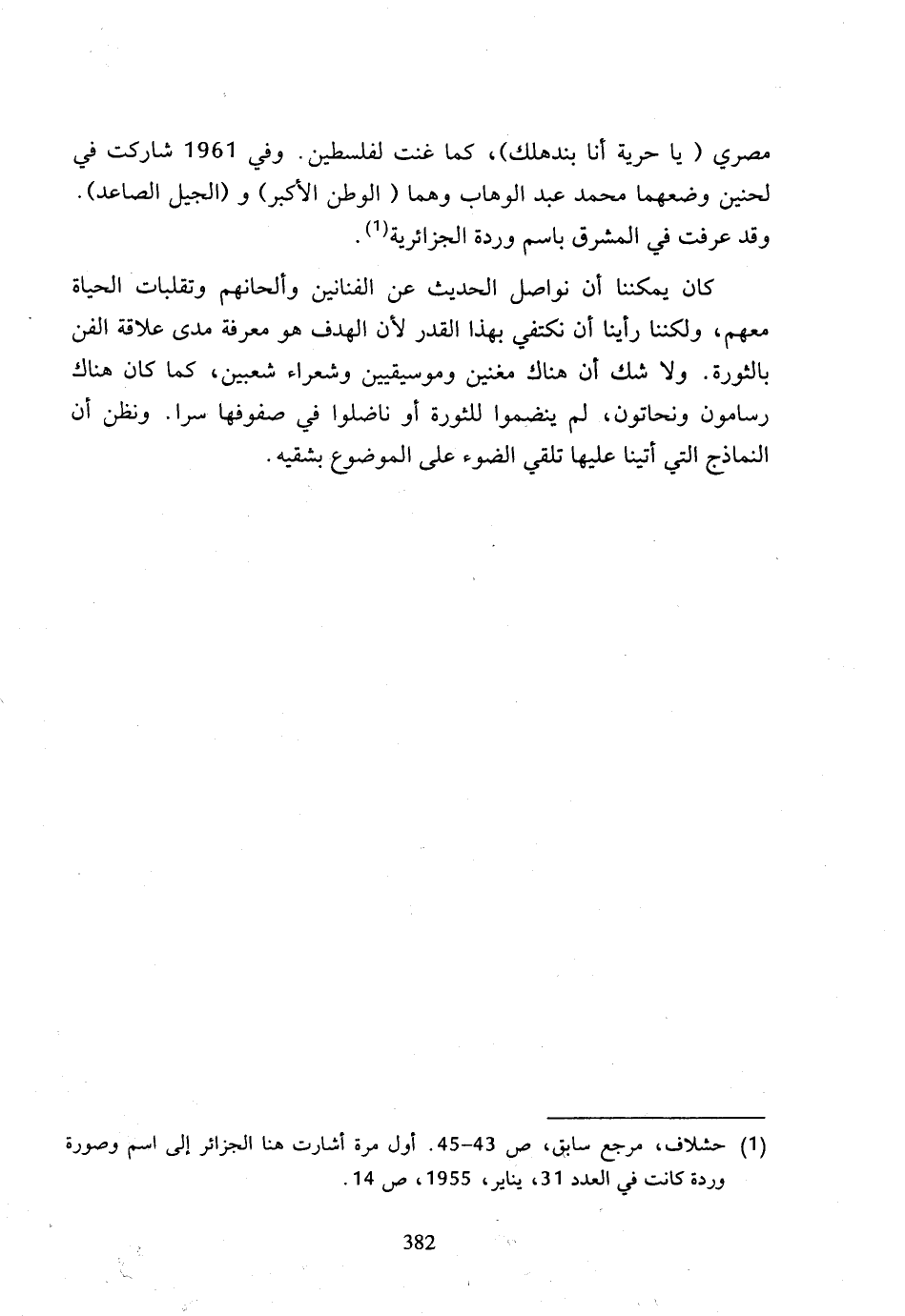 (1) حشلاف، مرجع سابق، ص 43 - 45، أول مرة أشارت هنا الجزائر إلى اسم وصورة وردة كانت في العدد 31، يناير، 1955، ص 14.