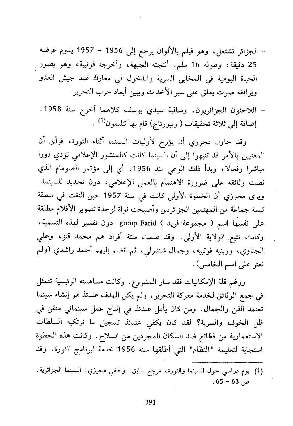 (1) يوم دراسي حول السينما والثورة، مرجع سابق، ولطفي محرزي: السينما الجزائرية، ص 63 - 65.